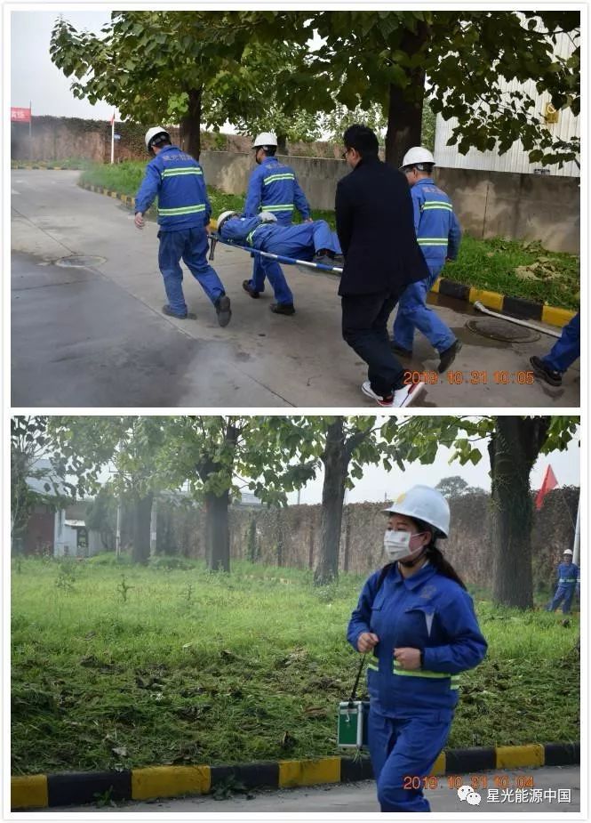 本次演练的假想背景为2019年10月31日上午10时,西安星光能源有限公司一期罐区TK100储罐高进加热管线腐蚀,严重导热油发生泄漏,事故发生后,西安星光能源有限公司迅速启动突发环境事件应急预案,采取前期应急处置措施,同时向环保局报告突发环境事故情况。环保局在接警后,迅速组织人员抵达现场,并分组对事故进行调查和处置。由于应急处理及时得当,没有发生环境污染,无人员伤亡,10时30分演练结束。